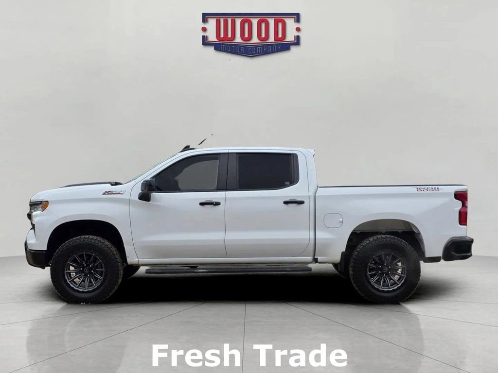 CARFAX One-Owner. Clean CARFAX. Silverado 1500 LT Trail Boss, 4D Crew Cab, EcoTec3 5.3L V8, 10-Speed Automatic, 4WD, Summit White, Jet Black w/Cloth Seat Trim, 10-Way Power Driver Seat w/Lumbar, 12.3 Multicolor Reconfigurable Digital Display, 120-Volt Bed Mounted Power Outlet, 120-Volt Instrument Panel Power Outlet, 2 USB Data Ports, 6-Speaker Audio System, All-Weather Floor Liner (LPO) (AAK), Auto High-beam Headlights, Auto-Locking Rear Differential, Automatic temperature control, Bluetooth® For Phone, Chevrolet Connected Access Capable, Color-Keyed Carpeting Floor Covering, Compass, Convenience Package, Deep-Tinted Glass, Dual Rear USB Ports (Charge Only), Dual-Zone Automatic Climate Control, Electric Rear-Window Defogger, Electrical Steering Column Lock, Electronic Cruise Control, Electronic Stability Control, Electronic Transmission Range Selector Shifter, EZ Lift Power Lock & Release Tailgate, Floor Mounted Center Console, Front Bucket Seats, Front dual zone A/C, Front LED Fog Lamps, Fully automatic headlights, HD Rear Vision Camera, Heated Driver & Front Outboard Passenger Seats, Heated Power-Adjustable Outside Mirrors, Heated Steering Wheel, High Gloss Black Mirror Caps, Hill Descent Control, Hitch Guidance, Inside Rear-View Mirror w/Tilt, Keyless Open & Start, LED Cargo Area Lighting, OnStar & Chevrolet Connected Services Capable, Performance Red Recovery Hooks, Power driver seat, Power Front Windows w/Driver Express Up/Down, Power Front Windows w/Passenger Express Down, Power Rear Windows w/Express Down, Power windows, Preferred Equipment Group 2LT, Rear 60/40 Folding Bench Seat (Folds Up), Remote keyless entry, Remote Vehicle Starter System, SiriusXM w/360L, Speed control, Standard Tailgate, Steering Wheel Audio Controls, Steering wheel mounted audio controls, Theft Deterrent System (Unauthorized Entry), Traction control, Trailering Package, Wi-Fi Hot Spot Capable, Wireless Charging, Wireless Phone Projection, Wrapped Steering Wheel. Summit White 2023 Chevrolet Silverado 1500 LT Trail Boss 4WD 10-Speed Automatic EcoTec3 5.3L V8