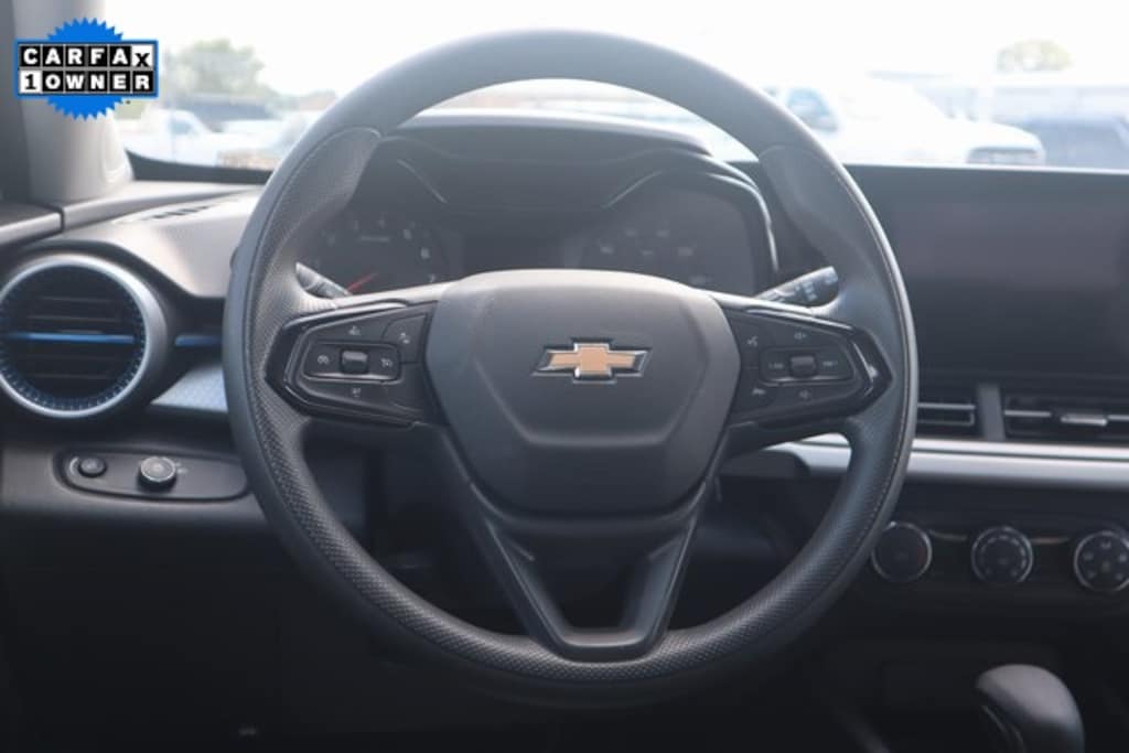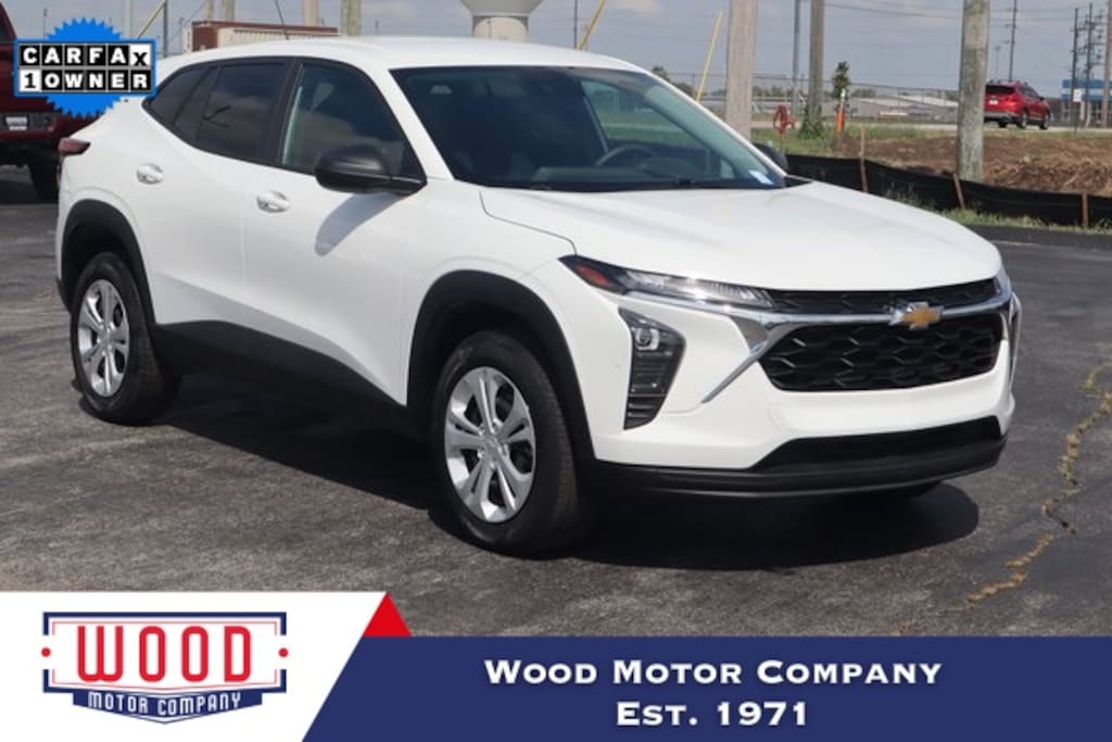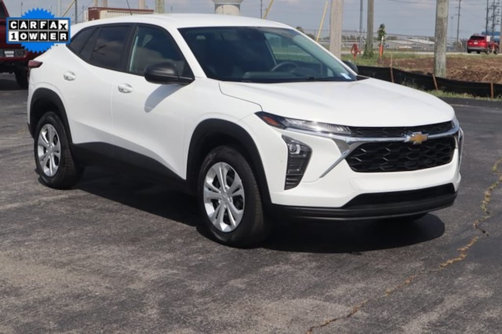 Summit White 2025 Chevrolet Trax LS FWD 6-Speed Automatic 1.2L Ecotec Turbo DOHC DI w/VVT 17" Steel Wheels w/Wheel Covers, 3.50 Final Drive Axle Ratio, 4-Speaker Audio System Feature, 4-Way Manual Front Passenger Seat Adjuster, Air Conditioning, Auto High-beam Headlights, Brake assist, Bumpers: body-color, Cloth Seat Trim, Compass, Driver door bin, Driver vanity mirror, Electronic Stability Control, Exterior Parking Camera Rear, Front reading lights, Fully automatic headlights, Illuminated entry, Outside temperature display, Overhead console, Panic alarm, Passenger door bin, Passenger vanity mirror, Power door mirrors, Power steering, Power windows, Preferred Equipment Group 1LS, Rear window defroster, Rear window wiper, Remote keyless entry, Security system, Speed control, Spoiler, Steering wheel mounted audio controls, Tachometer, Telescoping steering wheel, Tilt steering wheel, Traction control, Trip computer, Variably intermittent wipers.