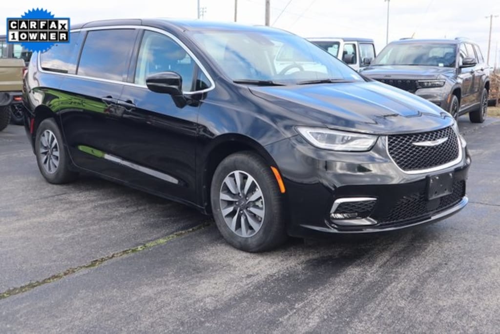 Diamond Black Crystal Pearlcoat 2024 Chrysler Pacifica Hybrid Select FWD CVT 3.6L V6 3.6L V6, 3rd row seats: split-bench, Apple CarPlay/Android Auto, Automatic temperature control, Black Seats, Brake assist, Bumpers: body-color, Caprice Leatherette Bucket Seats, Compass, Driver door bin, Driver vanity mirror, Driver's Seat Mounted Armrest, Electronic Stability Control, Exterior Mirrors w/Heating Element, Exterior Mirrors w/Supplemental Signals, Exterior Parking Camera Rear, Front Bucket Seats, Front dual zone A/C, Front Fascia Air Deflectors, Front reading lights, Fully automatic headlights, Gloss Black Exterior Mirrors, Heated front seats, Heated steering wheel, Illuminated Cupholders, Illuminated entry, Low tire pressure warning, Memory seat, Navigation System, Outside temperature display, Overhead console, Panic alarm, Passenger door bin, Passenger seat mounted armrest, Passenger vanity mirror, Power driver seat, Power Liftgate, Power steering, Power windows, Quick Order Package 2EP Select, Radio: Uconnect 5 Nav w/10.1" Display, Rear air conditioning, Rear reading lights, Rear window defroster, Reclining 3rd row seat, Remote keyless entry, Security system, Speed control, Split folding rear seat, Steering wheel mounted audio controls, Tachometer, Telescoping steering wheel, Tilt steering wheel, Trip computer, Voltmeter, Wheels: 17" x 7.0" Diamond Cut w/Painted Pockets.