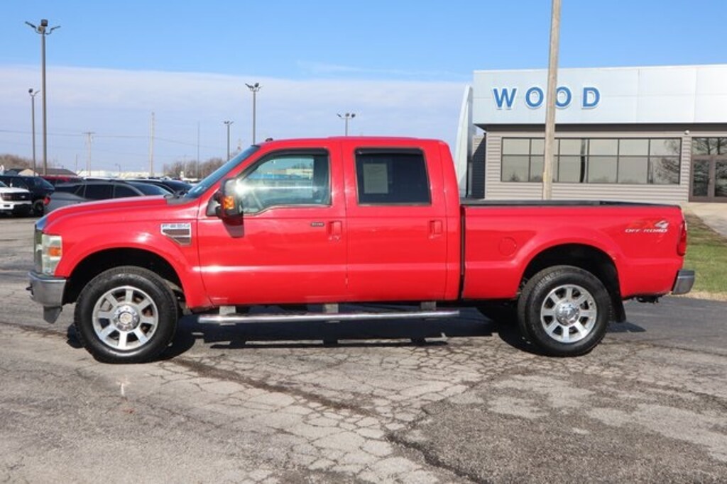 Red 2010 Ford F-250SD Lariat 4WD Power Stroke 6.4L V8 DI 32V OHV Twin Turbo Diesel Power Stroke 6.4L V8 DI 32V OHV Twin Turbo Diesel, 4WD, ABS brakes, Alloy wheels, AM/FM radio: SIRIUS, AM/FM Stereo w/In-Dash 6-Disc CD/MP3 Player, Auto-dimming Rear-View mirror, Bumpers: chrome, Colored Front & Rear Rancho Branded Shocks, Compass, Driver door bin, Driver vanity mirror, Floor Console, Front Bucket Seats, Front Center Armrest, Front dual zone A/C, Front reading lights, FX4 Off-Road Package, Heated door mirrors, Heated front seats, Illuminated entry, Lariat Plus Package, Leather Seating Surfaces Luxury Capt's Chairs w/Heat, Leather steering wheel, Limited Slip w/3.55 Axle Ratio, Low tire pressure warning, Memory Features, Navigation System w/Satellite Radio, Order Code 608A, Outside temperature display, Overhead console, Panic alarm, Passenger vanity mirror, Power Adjustable Pedals, Power driver seat, Power steering, Power windows, Rear Parking Sensors, Rear reading lights, Rear seat center armrest, Rear-View Camera, Remote keyless entry, Security system, SIRIUS Satellite Radio, Speed control, Split folding rear seat, Steering wheel mounted audio controls, Tachometer, Tilt steering wheel, Trip computer, Unique FX4 Off Road Box Decal, Universal Garage Door Opener, Variably intermittent wipers.