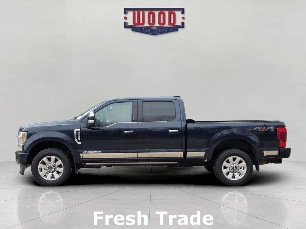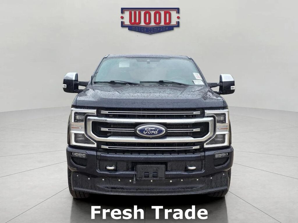 CARFAX One-Owner. F-250SD Platinum, 4D Crew Cab, Power Stroke 6.7L V8 DI 32V OHV Turbodiesel, 10-Speed Automatic, 4WD, Antimatter Blue Metallic, Black w/Unique Platinum Leather 40/Console/40 Seats, 110V/400W Outlet, 397 Amp Alternator, 5th Wheel/Gooseneck Hitch Prep Package, Adaptive Steering, Auto High-beam Headlights, Automatic temperature control, Dual front impact airbags, Dual front side impact airbags, Electronic Stability Control, Exterior Parking Camera Rear, Front Bucket Seats, Front dual zone A/C, Fully automatic headlights, Gooseneck Hitch Kit (Pre-Installed), Heated door mirrors, High Capacity Trailer Tow Package, Lane-Keeping Alert, Low tire pressure warning, Navigation System, Panic alarm, Power driver seat, Power windows, Pro Trailer Backup Assist - High Capacity, Radio: B&O System by Bang & Olufsen, Rapid-Heat Supplemental Cab Heater, Rear Parking Sensors, Remote keyless entry, Security system, SiriusXM Radio, Speed control, Split folding rear seat, Steering wheel mounted audio controls, SYNC 3 Communications & Entertainment System, Telescoping steering wheel, Tilt steering wheel, Tough Bed Spray-In Bedliner, Traction control, Twin Panel Power Moonroof, Ultimate Trailer Tow Camera System, Voice-Activated Navigation. Antimatter Blue Metallic 2021 Ford F-250SD Platinum 4WD 10-Speed Automatic Power Stroke 6.7L V8 DI 32V OHV Turbodiesel