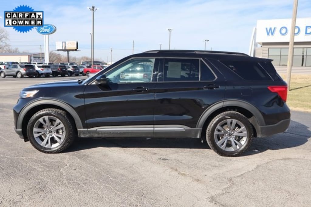 Agate Black Metallic 2022 Ford Explorer XLT 4WD 10-Speed Automatic 2.3L EcoBoost I-4 4WD, 1st Row Heated Seats, 3.58 Non-Limited-Slip Rear Axle Ratio, 3rd row seats: bench, Acoustic-Laminated Front Side Windows, ActiveX Captain's Chairs, Auto High-beam Headlights, Auto Start-Stop Removal, Automatic temperature control, Brake assist, Class IV Trailer Tow Package, Compass, Delay-off headlights, Driver door bin, Driver vanity mirror, Electronic Stability Control, Equipment Group 202A, Evasive Steering Assist, Exterior Parking Camera Rear, Ford Co-Pilot360 Assist+, FordPass Connect, Front Bucket Seats, Front Center Armrest, Front dual zone A/C, Front reading lights, Fully automatic headlights, Heated door mirrors, Heated front seats, Heated Steering Wheel, Illuminated entry, Intelligent Adaptive Cruise Control, Leather steering wheel, LED Fog Lamps, Low tire pressure warning, Navigation System, Outside temperature display, Overhead console, Panic alarm, Passenger vanity mirror, Power driver seat, Power Liftgate, Power passenger seat, Power steering, Power windows, Rear air conditioning, Rear Auxiliary Controls Credit, Rear reading lights, Rear window defroster, Rear window wiper, Remote keyless entry, Remote Start System, SecuriCode Keyless Entry Keypad, Security system, Speed control, Speed Sign Recognition, Speed-Sensitive Wipers, Split folding rear seat, Steering wheel mounted audio controls, SYNC 3 Communications & Entertainment System, SYNC 3/Apple CarPlay/Android Auto, Tachometer, Telescoping steering wheel, Tilt steering wheel, Trip computer, Unique Cloth Captain's Chairs, Variably intermittent wipers, Voice-Activated Touchscreen Navigation System, Wheels: 20" 10-Spoke Carbonized Gray-Painted, XLT Sport Appearance Package.