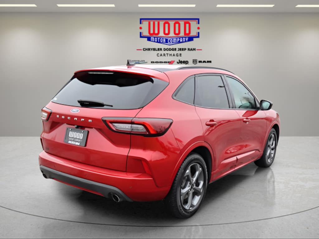 Rapid Red Metallic Tinted Clearcoat 2023 Ford Escape ST-Line FWD 8-Speed Automatic 1.5L EcoBoost 3.81 Axle Ratio, Air Conditioning, Auto High-beam Headlights, Automatic temperature control, Brake assist, Bumpers: body-color, Compass, Connected Built-In Navigation, Delay-off headlights, Driver door bin, Driver vanity mirror, Electronic Fuel Door Release, Electronic Stability Control, Equipment Group 300A, Exterior Parking Camera Rear, Ford Co-Pilot360 Assist+, Front Bucket Seats, Front Center Armrest, Front dual zone A/C, Front reading lights, Fully automatic headlights, Illuminated entry, Intelligent Adaptive Cruise Control w/Stop-and-Go, Low tire pressure warning, Neutral Towing Capability, Outside temperature display, Overhead console, Panic alarm, Passenger door bin, Passenger vanity mirror, Pedestrian Alert Sounder, Power door mirrors, Power driver seat, Power Liftgate, Power steering, Power windows, Rear Parking Sensor, Rear reading lights, Rear seat center armrest, Rear window defroster, Rear window wiper, Rear-View Camera, Remote keyless entry, Speed control, Speed Sign Recognition, Speed-Sensitive Wipers, Split folding rear seat, Spoiler, Sport steering wheel, Steering wheel mounted audio controls, SYNC 4 w/Enhanced Voice Recognition, Tachometer, Tech Pack #1, Telescoping steering wheel, Tilt steering wheel, Trip computer, Variably intermittent wipers, Wheels: 18" Rock Metallic Painted Aluminum.