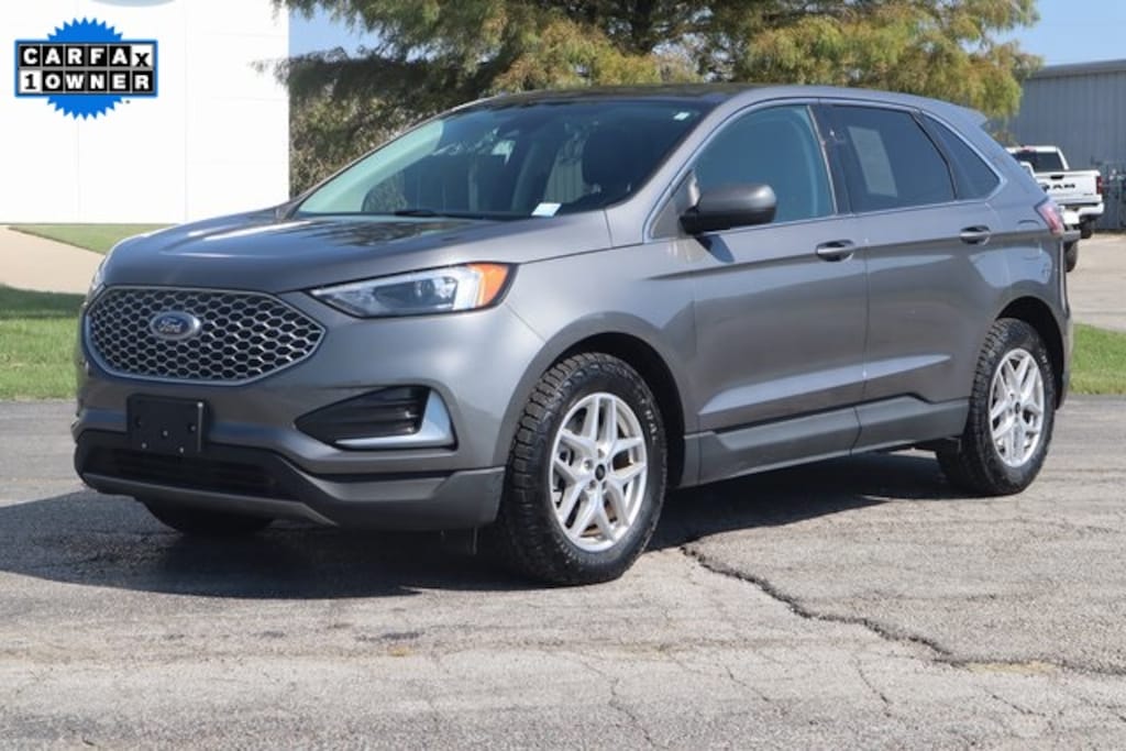 Gray Metallic 2024 Ford Edge SEL AWD 8-Speed Automatic EcoBoost 2.0L I4 GTDi DOHC Turbocharged VCT AWD, ActiveX Trimmed Heated Bucket Seats, Auto High-beam Headlights, Auto-dimming Rear-View mirror, Automatic temperature control, Brake assist, Bumpers: body-color, Compass, Driver door bin, Driver vanity mirror, Electronic Stability Control, Equipment Group 201A, Front Bucket Seats, Front Center Armrest w/Storage, Front dual zone A/C, Front License Plate Bracket, Front reading lights, Fully automatic headlights, Heated door mirrors, Heated front seats, Illuminated entry, Leather steering wheel, Low tire pressure warning, Outside temperature display, Overhead console, Panic alarm, Passenger vanity mirror, Power door mirrors, Power driver seat, Power passenger seat, Power steering, Power windows, Rear Parking Sensors, Rear reading lights, Rear seat center armrest, Rear window defroster, Remote keyless entry, Speed control, Split folding rear seat, Spoiler, Steering wheel mounted audio controls, SYNC 4A w/Enhanced Voice Recognition, Tachometer, Telescoping steering wheel, Tilt steering wheel, Trip computer, Wheels: 18" Sparkle Silver-Painted Aluminum.