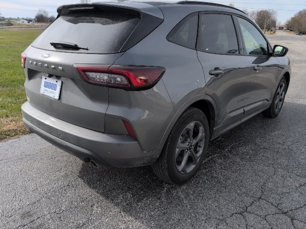 Carbonized Gray Metallic 2024 Ford Escape ST-Line FWD 8-Speed Automatic 1.5L EcoBoost 3.81 Axle Ratio, Adaptive Cruise Control w/Stop-and-Go, Air Conditioning, Auto High-beam Headlights, Automatic temperature control, Brake assist, Bumpers: body-color, Cold Weather Package, Compass, Connected Navigation, Delay-off headlights, Driver door bin, Driver vanity mirror, Electronic Stability Control, Equipment Group 300A, Exterior Parking Camera Rear, Ford Co-Pilot360 Assist+, Front Bucket Seats, Front Center Armrest, Front dual zone A/C, Front License Plate Bracket, Front reading lights, Fully automatic headlights, Heated Front Row Seats, Heated Sideview Mirrors, Heated Steering Wheel, Illuminated entry, Outside temperature display, Overhead console, Passenger door bin, Passenger vanity mirror, Power door mirrors, Power driver seat, Power Liftgate, Power steering, Power windows, Rear Parking Sensor, Rear reading lights, Rear seat center armrest, Rear window defroster, Rear window wiper, Rear-View Camera, Remote keyless entry, Remote Starter System, Speed control, Speed Sign Recognition, Speed-Sensitive Wipers, Split folding rear seat, Sport steering wheel, Steering wheel mounted audio controls, SYNC 4 w/Enhanced Voice Recognition, Tachometer, Tech Pack #1, Telescoping steering wheel, Tilt steering wheel, Trip computer, Variably intermittent wipers, Vinyl/Cloth Front Sport Contour Bucket Seats, Wheels: 18" Rock Metallic Painted Aluminum.