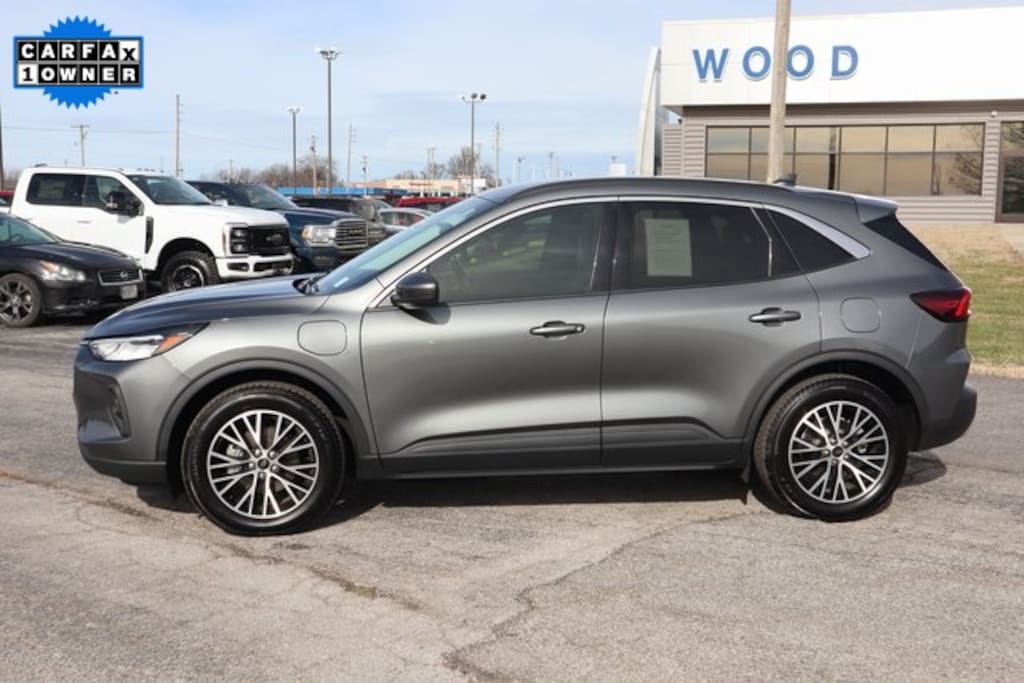 Carbonized Gray Metallic 2024 Ford Escape Plug-In Hybrid FWD eCVT 2.5L iVCT 2.5L iVCT, Alloy wheels, Automatic temperature control, Brake assist, Bumpers: body-color, Cargo Mat, Compass, Delay-off headlights, Driver door bin, Driver vanity mirror, Electronic Stability Control, Equipment Group 700A, Exterior Parking Camera Rear, Front Bucket Seats, Front Center Armrest, Front dual zone A/C, Front fog lights, Front License Plate Bracket, Front reading lights, Heated door mirrors, Heated front seats, Heated steering wheel, Heated Vinyl/Cloth Front Sport Contour Bucket Seats, Illuminated entry, Low tire pressure warning, Navigation system: Connected Navigation, Outside temperature display, Overhead console, Panic alarm, Passenger door bin, Passenger vanity mirror, Power door mirrors, Power driver seat, Power Liftgate, Power steering, Power windows, Rear reading lights, Rear seat center armrest, Rear window defroster, Rear window wiper, Remote keyless entry, Speed control, Speed-Sensitive Wipers, Split folding rear seat, Steering wheel mounted audio controls, Telescoping steering wheel, Tilt steering wheel, Trip computer, Variably intermittent wipers, Wheels: 19" Machined-Face Magnetic Aluminum.