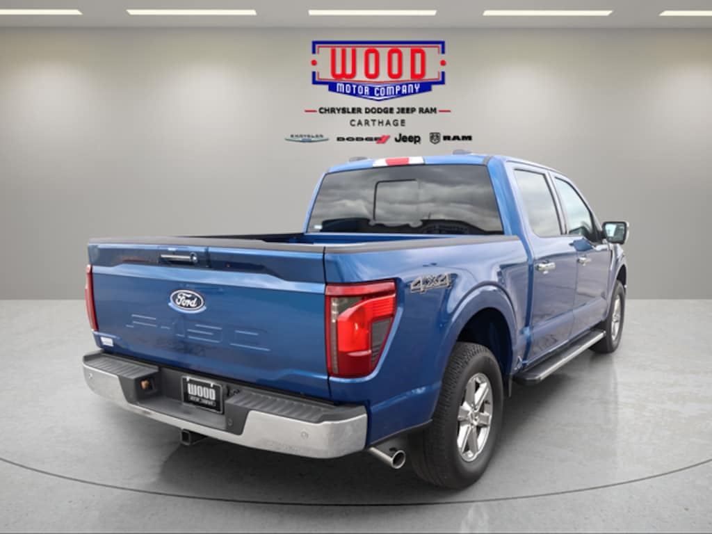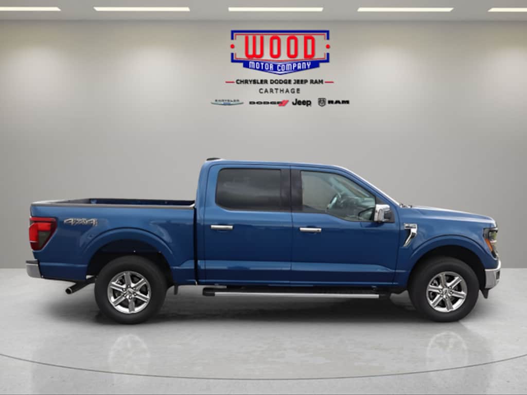 Blue Metallic 2024 Ford F-150 XLT 4WD 10-Speed Automatic 2.7L V6 EcoBoost 4WD, 3.55 Axle Ratio, 400W Cab & Bed Outlets, Adaptive Cruise Control w/Stop & Go, Air Conditioning, Auto High-beam Headlights, Auto-Dimming Rear-View Mirror, Auto-dimming Rear-View mirror, Automatic temperature control, Brake assist, Bumpers: chrome, Cloth 40/Console/40 Front Seats, Compass, Delay-off headlights, Driver door bin, Driver vanity mirror, Electronic Stability Control, Equipment Group 302A Mid, Ford BlueCruise Equipped (90-Day Trial), Front Center Armrest w/Storage, Front dual zone A/C, Front fog lights, Front License Plate Bracket, Front reading lights, Fully automatic headlights, GVWR: 6,650 lbs Payload Package, Heated door mirrors, Heated Front Seats, Illuminated entry, Intelligent Access w/Push Button Start, Navigation system: Connected Navigation, Outside temperature display, Overhead console, Panic alarm, Passenger door bin, Passenger vanity mirror, Power door mirrors, Power driver seat, Power Glass Heated Sideview Mirrors, Power steering, Power windows, Power-Sliding Rear Window, Radio: AM/FM SiriusXM w/360L, Rear reading lights, Rear step bumper, Rear window defroster, Remote keyless entry, Remote Start System w/Remote Tailgate Release, Security system, Speed control, Speed Sign Recognition, Steering wheel mounted audio controls, SYNC 4 w/Enhanced Voice Recognition, Tachometer, Telescoping steering wheel, Tilt steering wheel, Trip computer, Variably intermittent wipers, Voltmeter, Wheels: 18" Chrome-Like PVD.