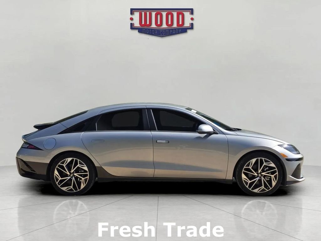 CARFAX One-Owner. IONIQ 6 SEL, 4D Sedan, Electric Motor, 1-Speed Automatic, RWD, Curated Silver, Dark Green/Gray w/H-Tex Leatherette Seating Surfaces, Apple CarPlay & Android Auto, Auto High-beam Headlights, Automatic temperature control, Cargo Blocks, Cargo Package, Electronic Stability Control, Four wheel independent suspension, Front Bucket Seats, Front dual zone A/C, Fully automatic headlights, Garage door transmitter: HomeLink, H-Tex Leatherette Seating Surfaces, harman/kardon® Speakers, Heated Front Bucket Seats, Heated front seats, Illuminated entry, Navigation System, Option Group 01, Outside temperature display, Passenger door bin, Power driver seat, Power windows, Radio: AM/FM/SiriusXM/HD Radio Audio System, Rear Reversible Cargo Tray, Remote keyless entry, Security system, Speed control, Split folding rear seat, Telescoping steering wheel, Tilt steering wheel, Traction control. Curated Silver 2023 Hyundai IONIQ 6 SEL RWD 1-Speed Automatic Electric MotorA solid name you can trust... Wood Motor. Recent Arrival! Odometer is 4829 miles below market average! 129/105 City/Highway MPG