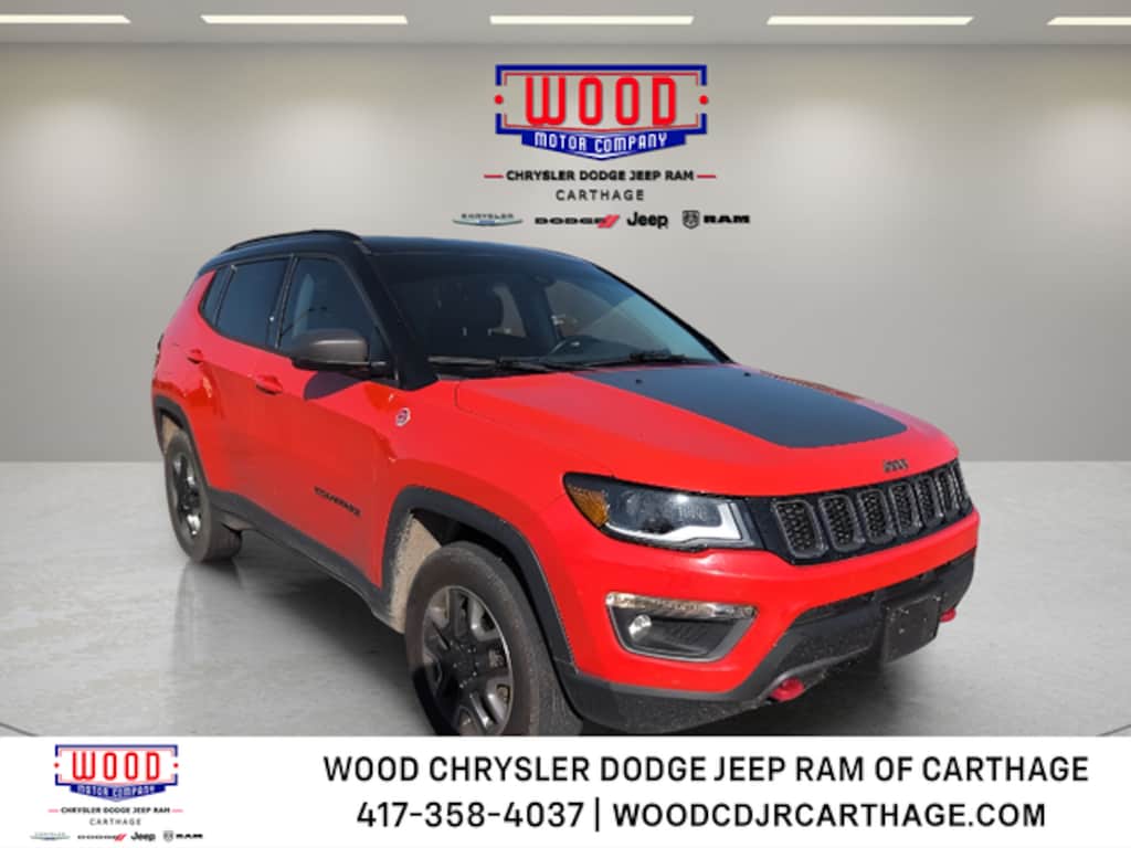 Spitfire Orange Clearcoat 2017 Jeep New Compass Trailhawk 4WD 9-Speed Automatic 2.4L I4 MultiAir 4.334 Axle Ratio, 7 & 4 Pin Wiring Harness, Advanced Brake Assist, Advanced Safety & Lighting Group, Air Conditioning, Apple CarPlay/Google Android Auto, Auto High Beam Headlamp Control, Auto-Dimming Rear-View Mirror, Automatic temperature control, Bi-Xenon High-Intensity Discharge Headlamps, Blind Spot & Cross Path Detection, Block heater, Brake assist, Bumpers: body-color, Class III Receiver Hitch, Compass, Delay-off headlights, Driver door bin, Driver vanity mirror, Electronic Stability Control, Front Bucket Seats, Front Center Armrest w/Storage, Front dual zone A/C, Front fog lights, Front reading lights, Full Speed FWD Collision Warn Plus, Fully automatic headlights, Heated door mirrors, Illuminated entry, Lane Departure Warning Plus, Leather Shift Knob, Low tire pressure warning, Outside temperature display, Overhead console, Panic alarm, ParkSense Rear Park Assist System, ParkView Rear Back-Up Camera, Passenger door bin, Passenger vanity mirror, Popular Equipment Group, Power door mirrors, Power Liftgate, Power steering, Power windows, Premium Cloth/Leather Trim Bucket Seats, Quick Order Package 2XE, Radio: Uconnect 4 w/8.4" Display, Rain sensing wipers, Rain Sensitive/Intermittent Wipers, Rear seat center armrest, Rear window defroster, Rear window wiper, Remote keyless entry, Remote Start System, Roof rack: rails only, Safe & Security Group, Security Alarm, Speed control, Split folding rear seat, Spoiler, Steering wheel mounted audio controls, Tachometer, Telescoping steering wheel, Tilt steering wheel, Trailer Tow Group, Trip computer, Turn signal indicator mirrors, Variably intermittent wipers, Wheels: 17" x 6.5" Polished/Black Pockets Aluminum.