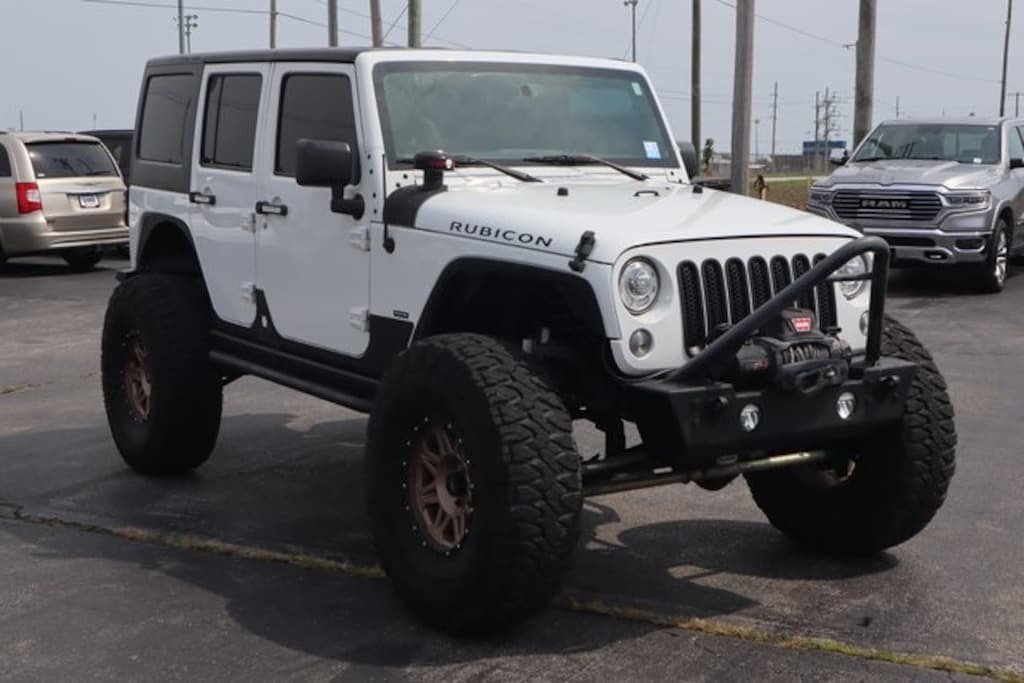 Bright White Clearcoat 2017 Jeep Wrangler Unlimited Rubicon 4WD 5-Speed Automatic 3.6L V6 24V VVT 17" x 7.5" Polished Mineral Gray Wheels, 4.10 Rear Axle Ratio, 6.5" Touchscreen Display, 8 Speakers, Add 4.10 Axle Ratio, Air Conditioning w/Auto Temperature Control, Air Filtering, Alpine 9-Speaker w/All Weather Subwoofer, AM/FM radio: SiriusXM, Black 3-Piece Hard Top, Brake assist, Class II Receiver Hitch, Cloth Seats w/Adjustable Head Restraints, Compass, Connectivity Group, Delete Sunrider Soft Top, Driver door bin, Driver vanity mirror, Electronic Stability Control, Freedom Panel Storage Bag, Front Bucket Seats, Front fog lights, Front reading lights, GPS Navigation, Heated Front Seats, Humidity Sensor, Illuminated entry, Leather steering wheel, Low tire pressure warning, Manufacturer's Statement of Origin, Max Tow Package, Outside temperature display, Passenger vanity mirror, Power door mirrors, Power steering, Power windows, Quick Order Package 24R, Rear anti-roll bar, Rear Window Defroster, Rear Window Wiper/Washer, Remote keyless entry, Remote Start System, Remote USB Port, Speed control, Split folding rear seat, Steering wheel mounted audio controls, Supplemental Front Seat Side Airbags, Tachometer, Tilt steering wheel, Tire Pressure Monitoring Display, Trailer Tow w/4-Pin Connector Wiring, Trip computer, Uconnect Voice Command w/Bluetooth, Vehicle Information Center.