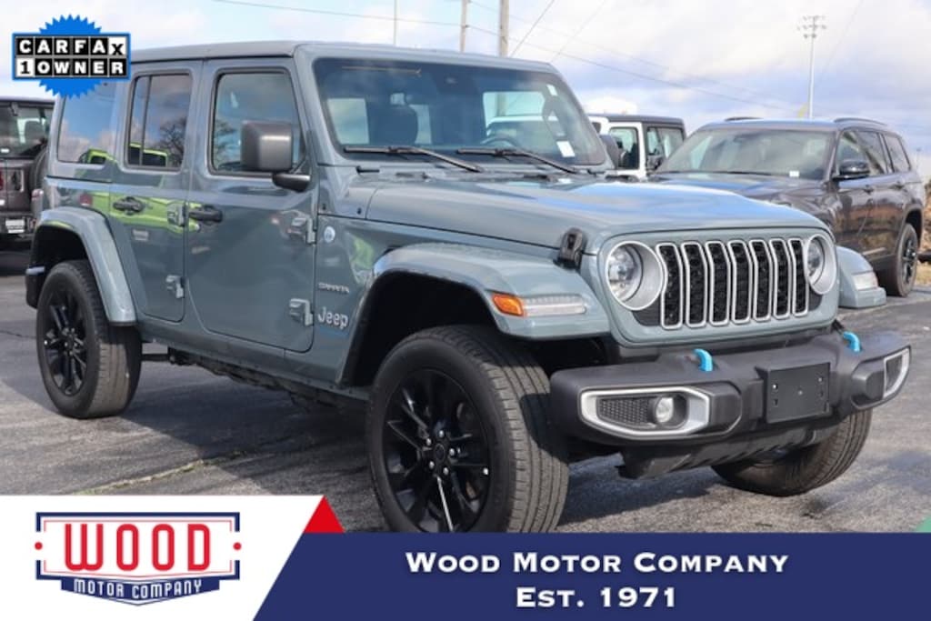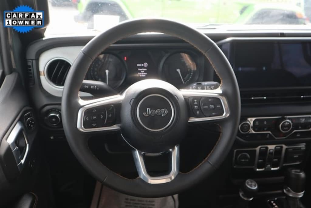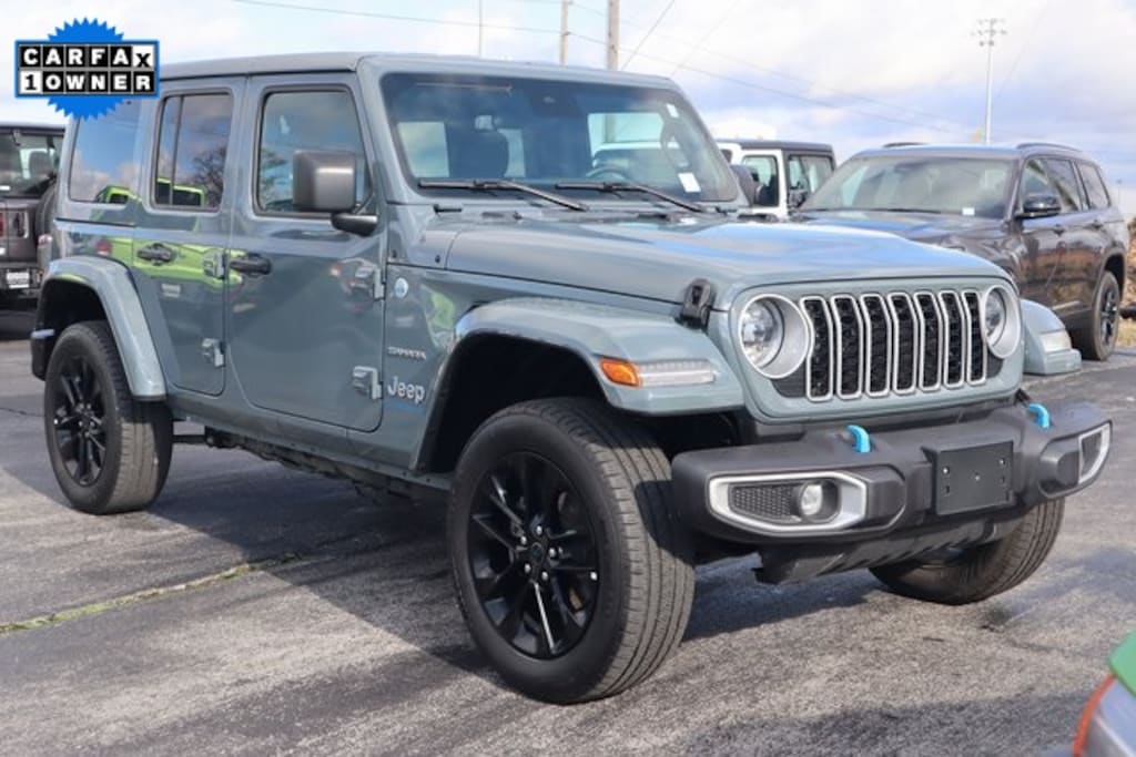 Anvil Clear Coat 2024 Jeep Wrangler Sahara 4xe 4WD 8-Speed Automatic 2.0L I4 DOHC 2.0L I4 DOHC, 12.3" Touchscreen Display, 3.73 Rear Axle Ratio, 4G LTE Wi-Fi Hot Spot, Apple CarPlay, Apple CarPlay/Android Auto, Automatic temperature control, Brake assist, Compass, Delay-off headlights, Driver door bin, Driver vanity mirror, Electronic Stability Control, Front dual zone A/C, Front fog lights, Front License Plate Bracket, Front reading lights, Fully automatic headlights, Heated door mirrors, Heated front seats, Heated steering wheel, Illuminated entry, Low tire pressure warning, Occupant sensing airbag, Outside temperature display, Panic alarm, ParkView Rear Back-Up Camera, Passenger vanity mirror, Power steering, Power windows, Quick Order Package 29P Sahara, Radio: Uconnect 5 w/12.3" Display, Rear reading lights, Rear seat center armrest, Rear Window Wiper/Washer, Remote keyless entry, Security system, Speed control, Split folding rear seat, Steering wheel mounted audio controls, Tachometer, Telescoping steering wheel, Tilt steering wheel, Trip computer, Variably intermittent wipers, Voltmeter, Wheels: 20" x 8" Painted Black Aluminum.