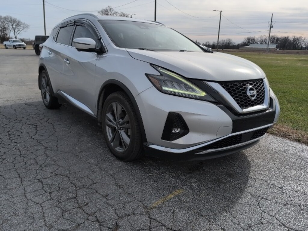 Brilliant Silver Metallic 2019 Nissan Murano Platinum FWD CVT with Xtronic 3.5L V6 DOHC 24V CVT with Xtronic, 11 Speakers, 4.667 Axle Ratio, Air Conditioning, AM/FM radio: SiriusXM, AM/FM/CD/MP3/WMA Audio System, Auto High-beam Headlights, Automatic temperature control, Blind Spot Warning, Brake assist, Bumpers: body-color, CD player, Compass, Delay-off headlights, Driver door bin, Driver vanity mirror, Electronic Stability Control, Front Bucket Seats, Front Center Armrest, Front dual zone A/C, Front fog lights, Front reading lights, Fully automatic headlights, Garage door transmitter: HomeLink, Heated door mirrors, Heated front seats, Heated rear seats, Heated steering wheel, Illuminated entry, Low tire pressure warning, Memory seat, Navigation System, NissanConnect Services Powered By SiriusXM, Outside temperature display, Overhead console, Panic alarm, Passenger door bin, Passenger vanity mirror, Power door mirrors, Power driver seat, Power Liftgate, Power moonroof, Power passenger seat, Power steering, Power windows, Radio data system, Rear reading lights, Rear seat center armrest, Rear window defroster, Rear window wiper, Remote keyless entry, Security system, Semi-Aniline Leather-Appointed Seat Trim, Speed control, Speed-Sensitive Wipers, Splash Guards, Split folding rear seat, Spoiler, Steering wheel memory, Steering wheel mounted audio controls, Tachometer, Telescoping steering wheel, Tilt steering wheel, Trip computer, Turn signal indicator mirrors, Variably intermittent wipers, Ventilated front seats, Wheels: 20" Dark Hyper Silver.