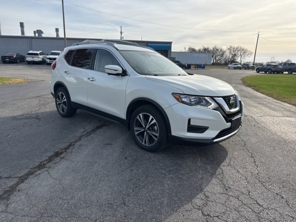 Pearl White Tricoat 2019 Nissan Rogue SV FWD CVT with Xtronic 2.5L I4 DOHC 16V 18" Aluminum Alloy Wheels, 6.386 Axle Ratio, Air Conditioning, Auto High-beam Headlights, Automatic temperature control, Blind Spot Warning, Brake assist, Chrome Rear Bumper Protector, Cloth Seat Trim, Delay-off headlights, Driver door bin, Driver vanity mirror, Electronic Parking Brake, Electronic Stability Control, First Aid Kit, Floor Mats & 2-PC Cargo Area Protector, Front Bucket Seats, Front Center Armrest w/Storage, Front dual zone A/C, Front reading lights, Fully automatic headlights, Heated door mirrors, Heated Front Bucket Seats, Heated front seats, Heated Leather-Wrapped Steering Wheel, Illuminated entry, Illuminated Kick Plates, Intelligent Aroundview Monitor (I-AVM), Intelligent Cruise Control, Leather Shift Knob, Memory Driver Seat & Outside Mirrors, Outside temperature display, Overhead console, Panic alarm, Passenger door bin, Passenger vanity mirror, Power door mirrors, Power driver seat, Power Liftgate, Power steering, Power windows, Premium Package, ProPILOT Assist, Radio: AM/FM/CD/AUX NissanConnect w/Navigation, Rear Parking Sensors, Rear seat center armrest, Rear window defroster, Rear window wiper, Remote keyless entry, Roof rack: rails only, Roof Rail Cross Bars, Security system, Speed control, Split folding rear seat, Spoiler, Steering Assist, Steering wheel mounted audio controls, Tachometer, Telescoping steering wheel, Tilt steering wheel, Trip computer, Turn signal indicator mirrors, Variably intermittent wipers.