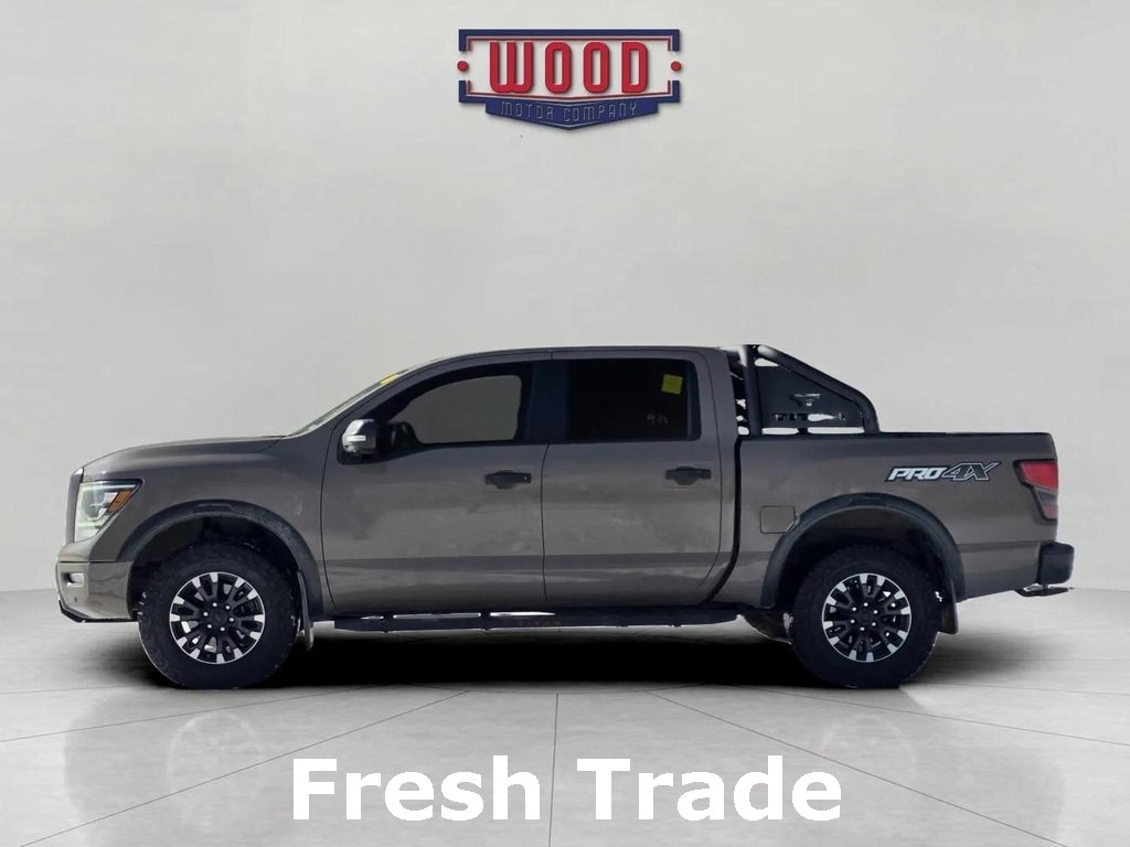 Clean CARFAX. Titan PRO-4X, 4D Crew Cab, 5.6L V8 DOHC 32V LEV3-ULEV70 400hp, 9-Speed Automatic, 4WD, Baja Storm, Black w/Leather-Appointed Seat Trim, 110V Outlet in Bed, 4-Way Power Assist Seat, AM/FM radio: SiriusXM, Auto High-beam Headlights, Automatic temperature control, Driver & Passenger Ventilated Front Seats, Dual Panel Panoramic Moonroof w/Tilt & Slide, Fender Premium Audio System w/12 Speakers, Front & Rear Parking Sensors, Front dual zone A/C, Fully automatic headlights, Heated Driver & Passenger Seat, Heated Power Tilt/Telescopic Steering Wheel, Heated Rear Seats, Intelligent Around View Monitor (I-AVM), Leather Seat Trim, LED Tailgate Area Illumination, LED Under Rail Bed Lighting, Memory Driver Seat w/Auto Entry/Exit Feature, Navigation system: NissanConnect Navigation, NissanConnect featuring Apple CarPlay and Android Auto, Power driver seat, Power Folding Auto Dimming Outside Mirrors, Power Sliding Rear Window w/Defogger, Power windows, PRO-4X Badged Floor Mats, PRO-4X Convenience Package, PRO-4X Moonroof Package, PRO-4X Utility Package, Protection Package 2, Proximity Activation, Puddle Lamps, Radio: NissanConnect w/Navigation, Rear Under Seat Storage, Rear Utility Bed Step, Remote Engine Start on Key Fob, Remote keyless entry, Security system, Speed control, Steering wheel mounted audio controls, Telescoping steering wheel, Tilt steering wheel, Traction control, Trailer Brake Controller, Trailer Light Check Function On Key Fob, Utilitrack System w/4 Tie-Down Cleats. Baja Storm 2020 Nissan Titan PRO-4X 4WD 9-Speed Automatic 5.6L V8 DOHC 32V LEV3-ULEV70 400hp