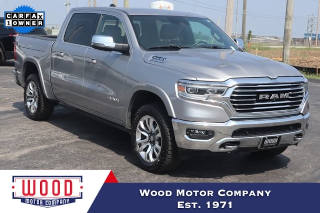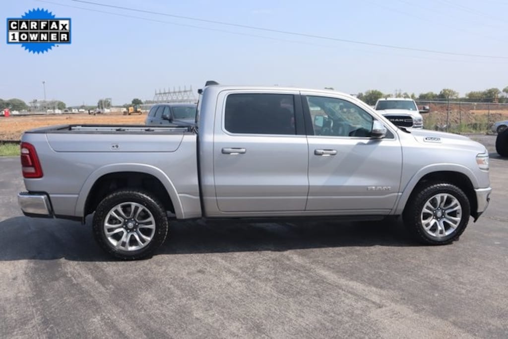 Billet Silver Metallic Clearcoat 2023 Ram 1500 Laramie Longhorn 4WD 8-Speed Automatic HEMI 5.7L V8 Multi Displacement VVT eTorque 3.21 Rear Axle Ratio, 33 Gallon Fuel Tank, Adaptive Cruise Control w/Stop & Go, Adjustable pedals, Anti-Spin Differential Rear Axle, Apple CarPlay/Android Auto, Auto High-beam Headlights, Auto-dimming door mirrors, Auto-dimming Rear-View mirror, Automatic temperature control, Blind Spot & Cross Path Detection, Brake assist, Bumpers: chrome, Chrome Exterior Mirrors, Compass, Delay-off headlights, Digital Rearview Mirror, Dome Dual LED Reading Lamp, Driver door bin, Driver Seat Memory, Dual-Pane Panoramic Sunroof, Electronic Stability Control, Exterior 115V AC Outlet, Exterior Mirrors Courtesy Lamps, Exterior Mirrors w/Heating Element, Exterior Mirrors w/Memory, Exterior Mirrors w/Supplemental Signals, Front Bucket Seats, Front Center Armrest w/Storage, Front dual zone A/C, Front fog lights, Front License Plate Bracket, Front reading lights, Front Seat Back Map Pockets, Fully automatic headlights, Garage door transmitter, harman/kardon 19 Speaker Premium Sound, Heads-Up Display, Heated door mirrors, Heated Front Seats, Heated front seats, Heated rear seats, Heated Second Row Seats, Heated Steering Wheel, Heated steering wheel, Illuminated entry, Lane Keep Assist, Leather steering wheel, Leather Trimmed Bucket Seats, LED CHMSL Lamp, LED Dome/Reading Lamp, Longhorn Level 1 Equipment Group, Low tire pressure warning, Memory seat, MOPAR Spray In Bedliner, Navigation System, Outside temperature display, Overhead console, Panic alarm, Parallel & Perp Park Assist w/Stop, ParkSense Front/Rear Park Assist w/Stop, ParkView Rear Back-Up Camera, Passenger door bin, Passenger vanity mirror, Pedal memory, Pedestrian Emergency Braking, Pick-Up Box Lighting, Power 8-Way Driver & Passenger Seats, Power door mirrors, Power driver seat, Power Running Boards, Power steering, Power windows, Quick Order Package 27K Longhorn, Radio: Uconnect 5 Nav w/12.0" Display, Rain sensing wipers, RamBox Cargo Management System, Rear seat center armrest, Remote keyless entry, Security system, Speed control, Steering wheel mounted audio controls, Surround View Camera System, Tachometer, Tailgate Ajar Warning Lamp, Telescoping steering wheel, Tilt steering wheel, Trip computer, Turn signal indicator mirrors, Variably intermittent wipers, Ventilated Front Seats, Ventilated Rear Seats, Voltmeter, Wheels: 20" x 9" Aluminum Painted/Polished, Wireless Charging Pad.