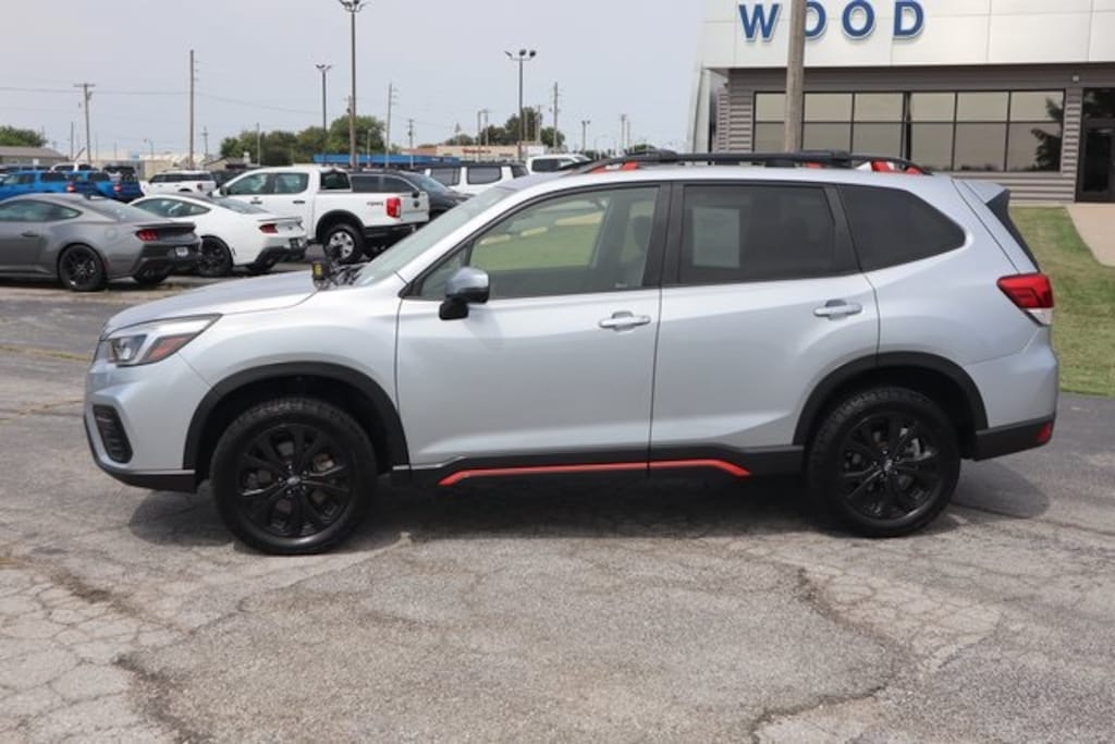 Ice Silver Metallic 2021 Subaru Forester Sport AWD Lineartronic CVT 2.5L 4-Cylinder DOHC 16V VVT Audio System & Reverse Auto Brake & Power Rr Gate, Auto High-beam Headlights, Auto-Dimming Exterior Mirror w/Approach Lighting, Automatic temperature control, Brake assist, Electronic Stability Control, Exterior Parking Camera Rear, Four wheel independent suspension, Front fog lights, Fully automatic headlights, harman kardon 576W Amp & Speaker System, Low tire pressure warning, Panic alarm, Power driver seat, Power moonroof: Panoramic, Power Rear Gate w/Automatic Close & Height Memory, Power steering, Power windows, Radio: Subaru Starlink 8.0" Multimedia Plus System, Rear window defroster, Remote keyless entry, Reverse Automatic Braking System (RAB), Security system, Speed control, Speed-sensing steering, Steering wheel mounted audio controls, Traction control.