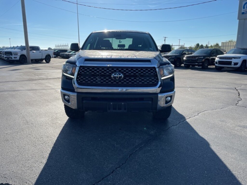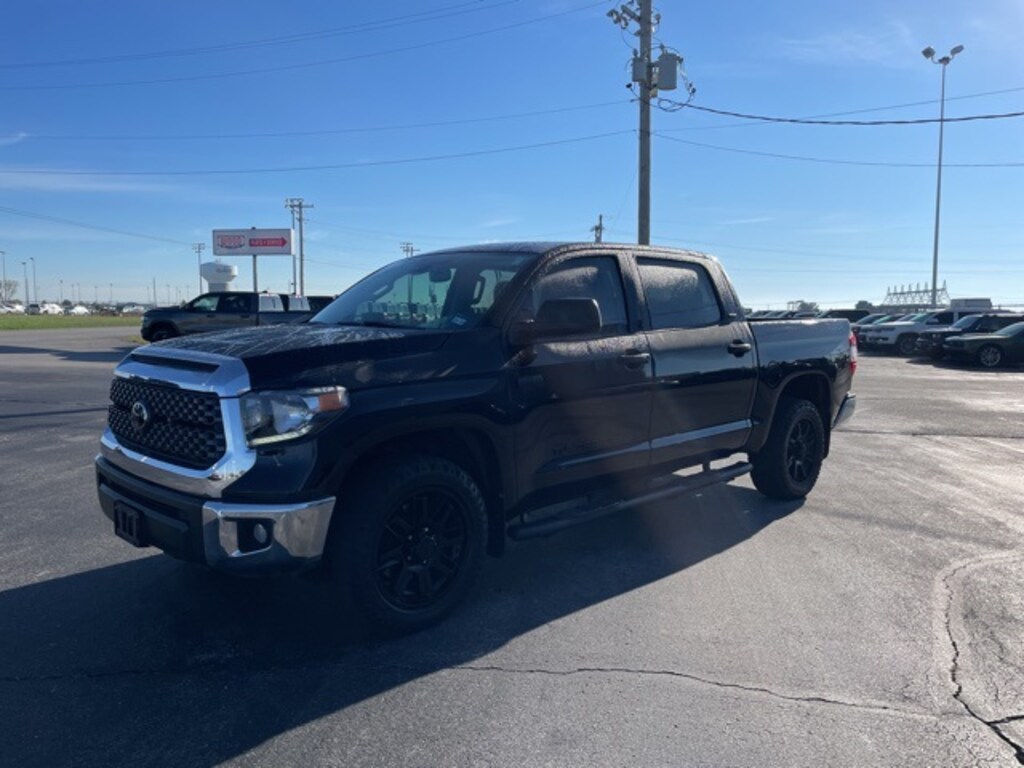 Black 2021 Toyota Tundra SR5 RWD 6-Speed Automatic Electronic with Overdrive i-Force 5.7L V8 DOHC 32V LEV Cloth, 18" x 8J Styled Steel Wheels, 38 Gallon Fuel Tank Capacity, 4.30 Axle Ratio, Air Conditioning, Anti-Theft Immobilizer w/Alarm, Apple CarPlay/Android Auto, Auto-dimming Rear-View mirror, Brake assist, Compass, Driver door bin, Driver vanity mirror, Electronic Stability Control, Exterior Parking Camera Rear, Front Bucket Seats, Front Center Armrest w/Storage, Front reading lights, Garage door transmitter: HomeLink, Heated door mirrors, Illuminated entry, Leather Seat Trim, Low tire pressure warning, Occupant sensing airbag, Outside temperature display, Overhead airbag, Overhead console, Passenger door bin, Passenger vanity mirror, Power door mirrors, Power steering, Power windows, Radio: Audio Plus AM/FM/HD Radio, Rear reading lights, Rear seat center armrest, Rear step bumper, Rear window defroster, Remote keyless entry, Safety Connect, SiriusXM Radio, Speed control, Speed-sensing steering, Split folding rear seat, SR5 Leather Package, Steering wheel mounted audio controls, Tachometer, Tilt steering wheel, Traction control, Trip computer, Urethane Tilt/Telescopic 4-Spoke Steering Wheel, Variably intermittent wipers, Voltmeter.